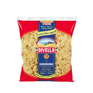 Divella Orecchiette is a traditional Apulian “little ears” pasta, characterized by its concave, cup-shaped design, made from high-quality durum wheat semolina. With a slightly rough, translucent texture, these 500g packs are designed to hold chunky, vegetable, or ragù sauces perfectly. They are ideal for authentic orecchiette con cime di rapa (turnip tops) and have a 10-12 minute cooking time.